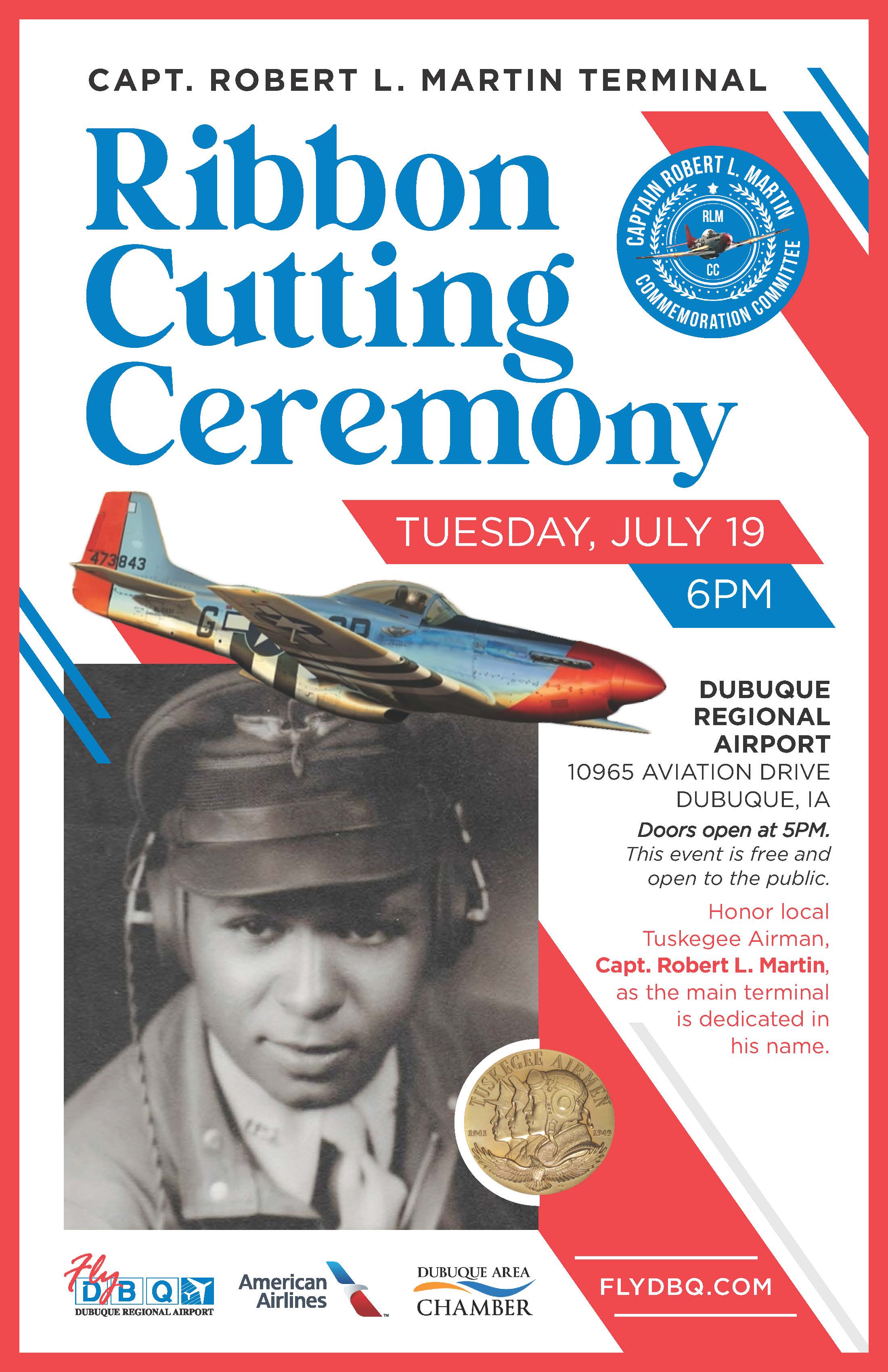 On Tuesday, July 19, 2022 – we will be celebrating Captain Martin’s life and naming the Dubuque Regional Airport Terminal Building after him