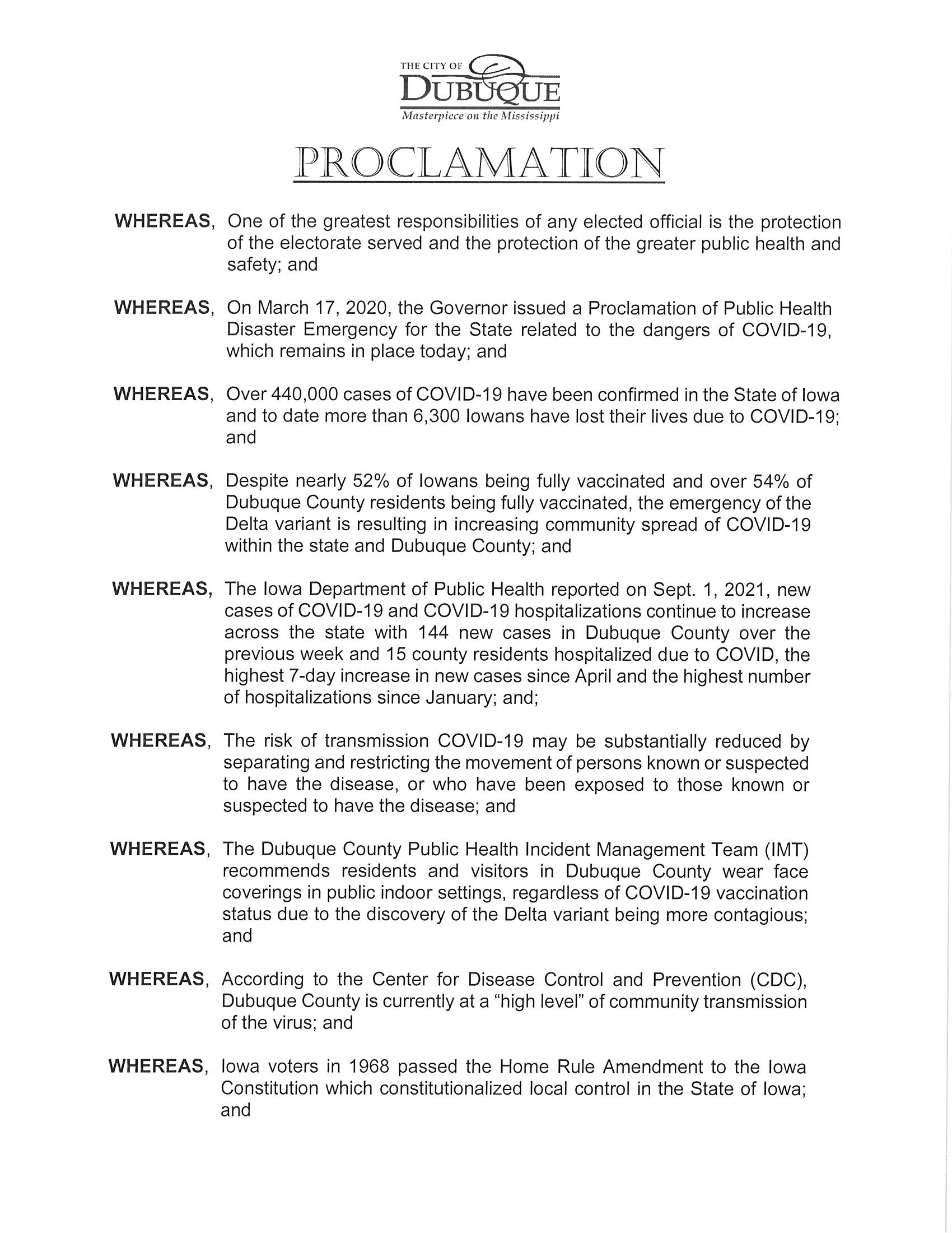 COVID-19 Proclamation, Sept. 7, 2021
