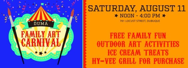 The DuMA will present its Family Art Carnival on Saturday, August 11, 2018 from Noon-4 p.m. in Washington Park, located across from the Museum. The free, family-oriented event is held in conjunction with the Museum's ongoing Second Saturday series, sponsored by Mediacom.