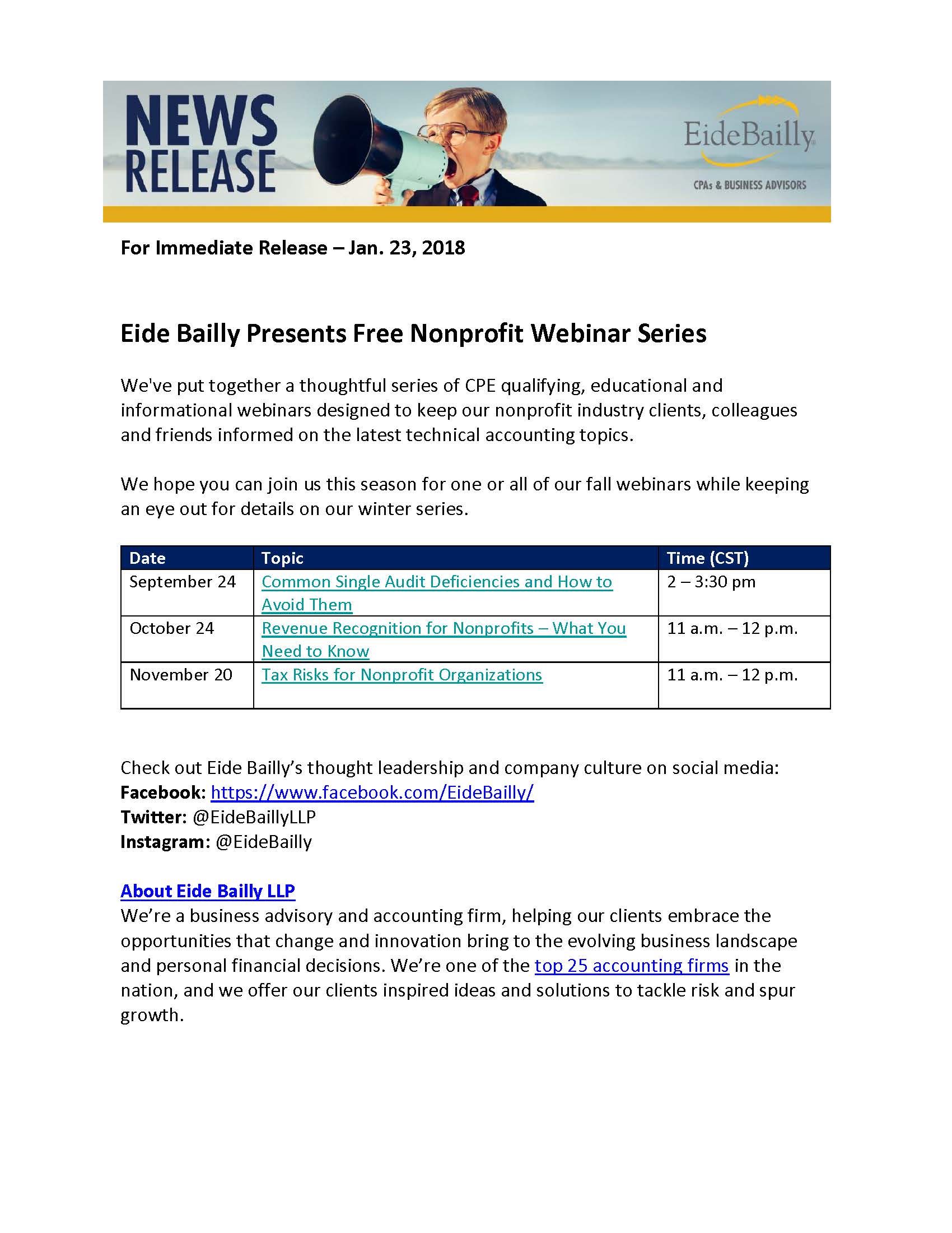 Eide Bailly Presents Free Nonprofit Webinar Series