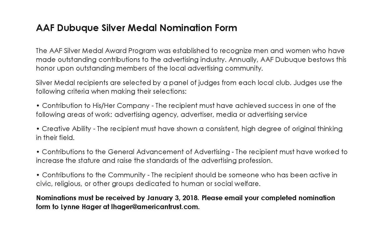 Do you know someone that should be recognized for his/her contributions to the advertising industry? Now is the time to nominate them for this year’s Silver Medal Award!
