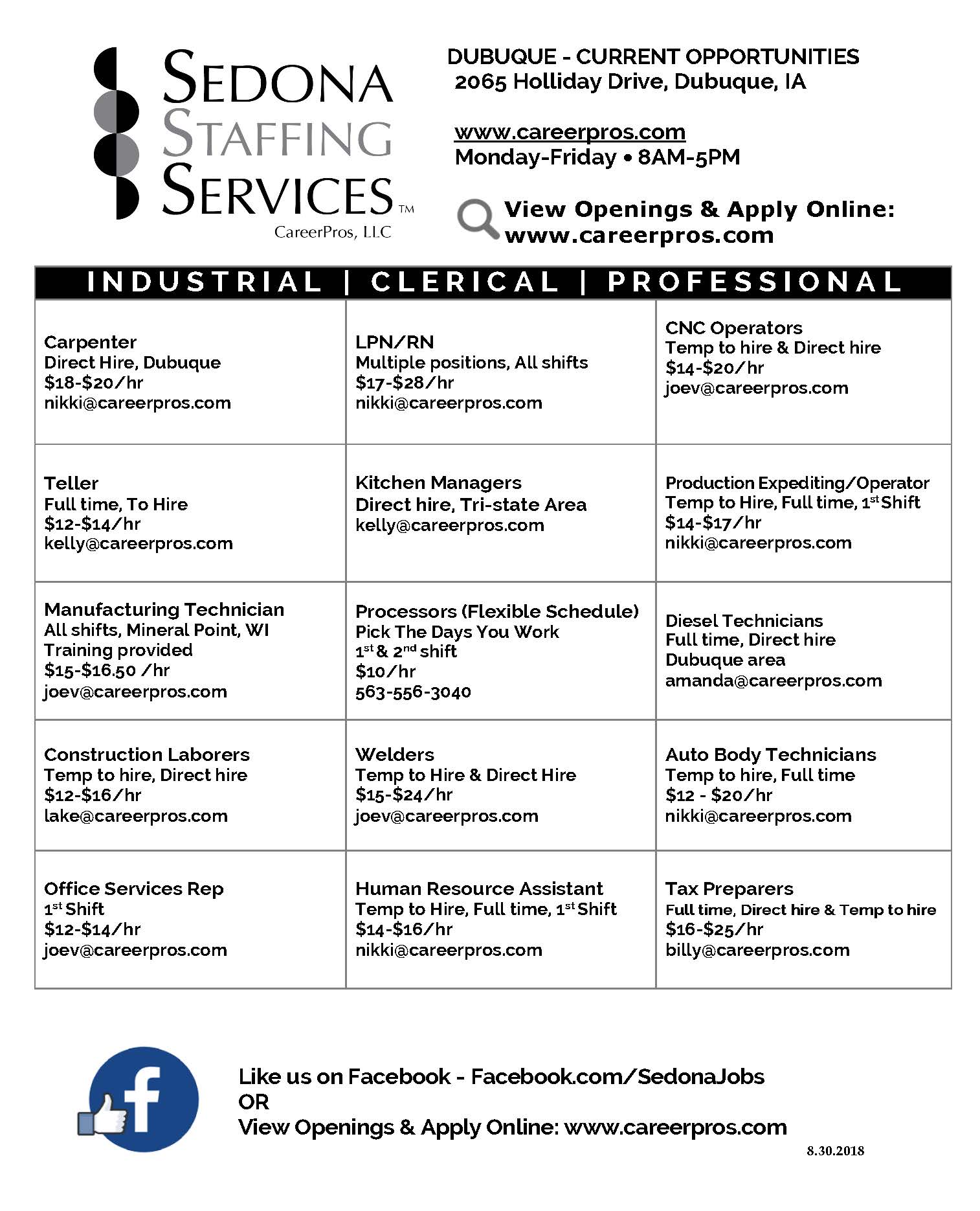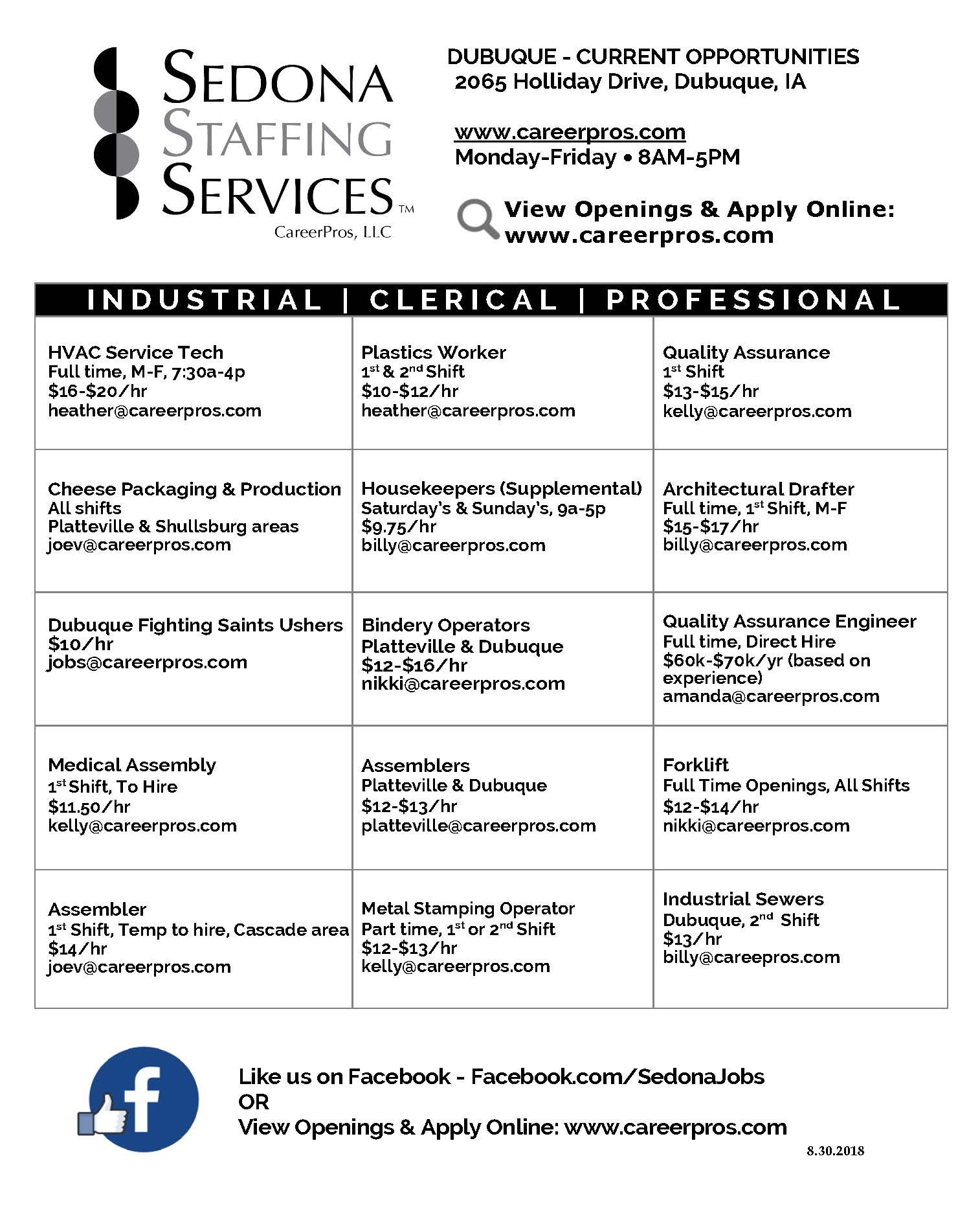 Sedona Staffing Dubuque Current Opportunities